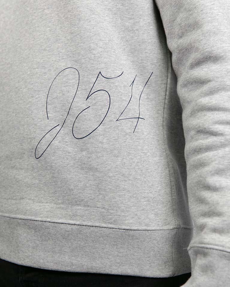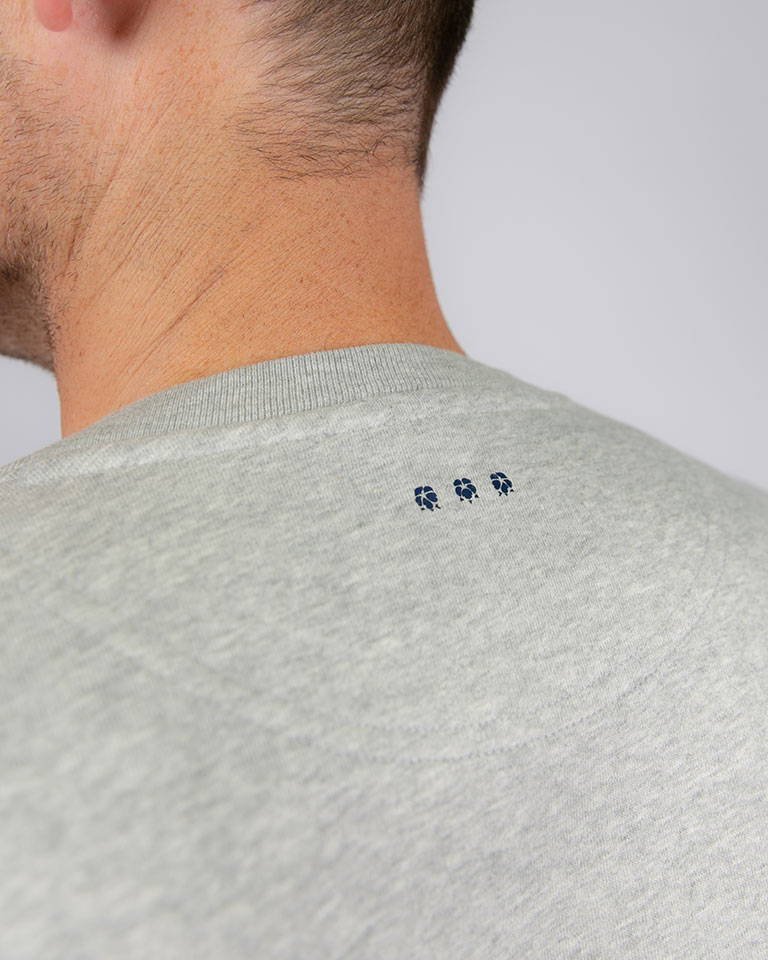 Comfortabele pasvorm (350gram p.m2) 85% biologisch katoen en 15% gerecycled polyester Stevige stof J54 detail