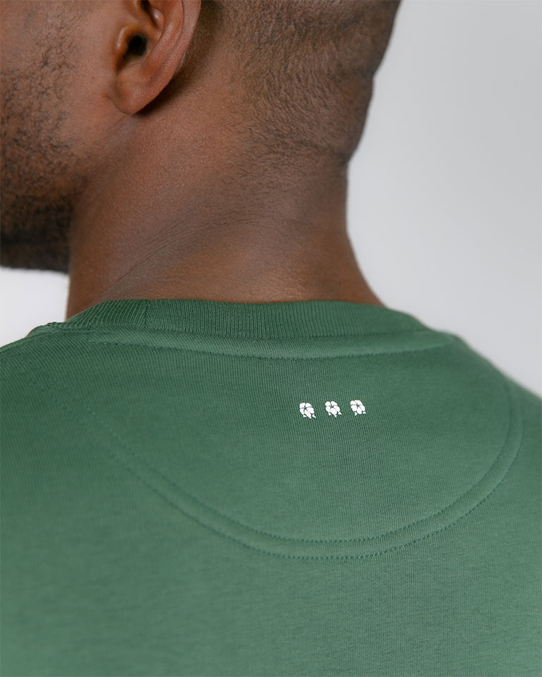 Comfortabele pasvorm (350gram p.m2), stevige stof 85% biologisch katoen en 15% gerecycled polyester J54 details in nek en in de zoom
