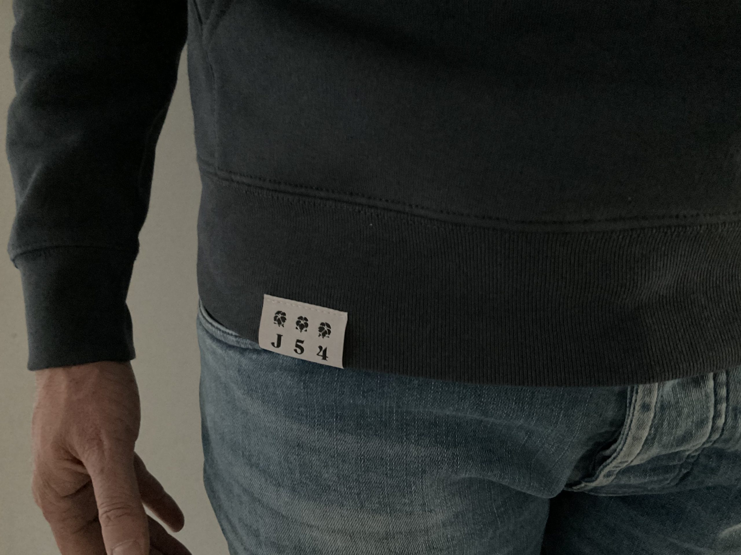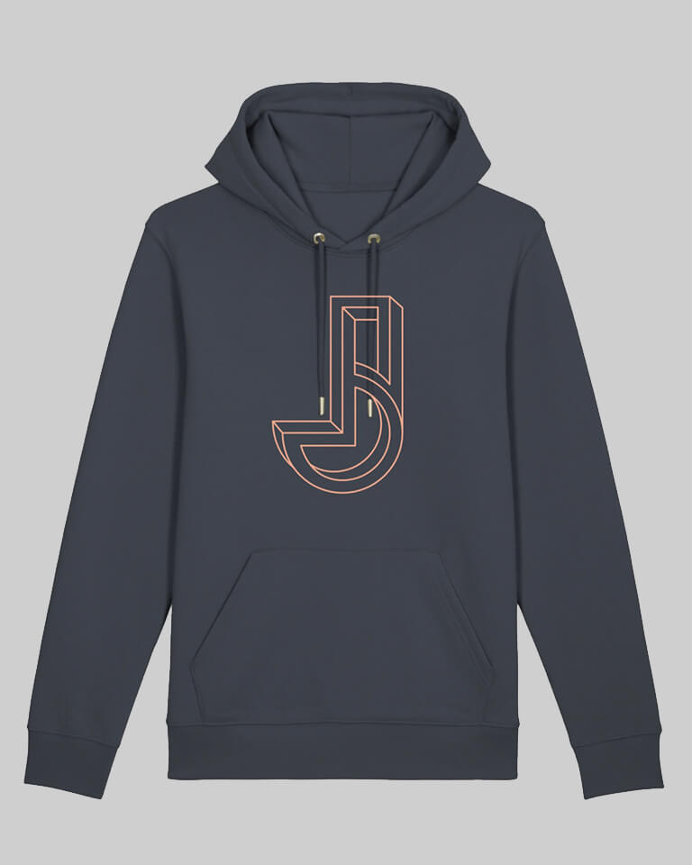 Hoge kwaliteit stevige stof (350gram p.m2) 85% biologisch katoen en 15% gerecycled polyester Gevoerde capuchon J54 detail